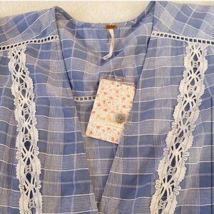 Free People Surplice Blue Plaid Flowy V neck Top