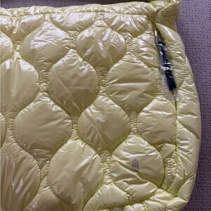 Just as effortless as it is essential, this so cool carryall bag is featured in an oversized style and quilted shiny fabrication to add an added special touch.