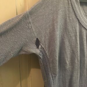 Really cute FP sweater with lace details all over. Long, oversized fit. Size medium but could fit a large. Has some wear, and hole on seam, which I'm pointing out in the last picture. Since it's on the seam it'd be pretty easy to sew up! Let me know if i can help answer any questions!😊