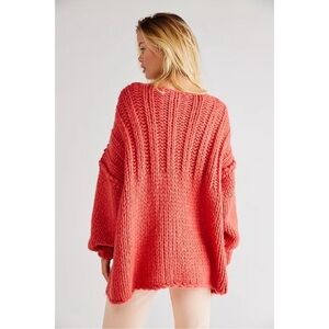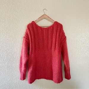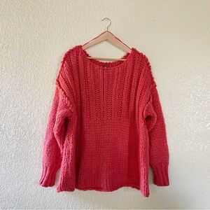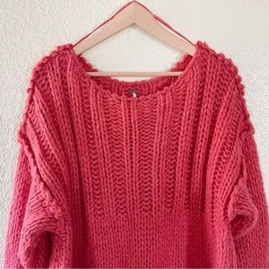 Free People Sweater Be There Pullover Chunky Loose Knit Slouchy Boho Coral NWOT