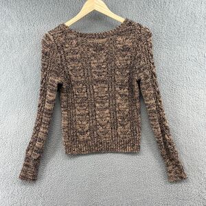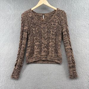 Free People Sweater Brown Cable Knit Contrasting browns scoop neck boho small