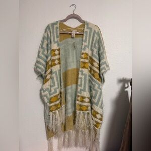 FP cape tribal ethnic fringe poncho ruana shawl wrap one size cover-up spring summer fall winter boho urban weekend!