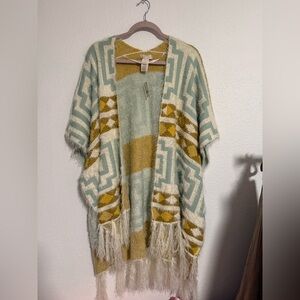 Free People Sweater Cardigan Kimono Wrap Poncho Cozy Diamondback OS