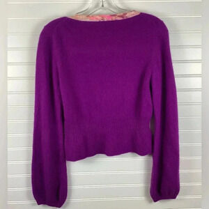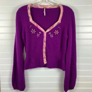 Free People Sweater Cardigan Medium Purple Wool & Angora Blend Rhinestone Embellished