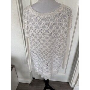 Beautiful open Pointelle knit with ribbed sleeves sweater from free people. Double ruffle hem with slit sides, scoop neck can be worn on off the shoulders, meant to fit very relaxed. See photos for complete details and dimensions.