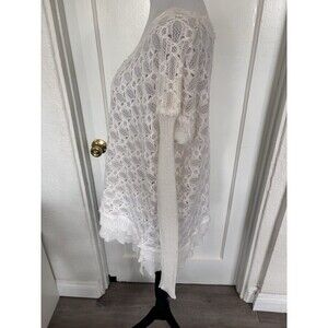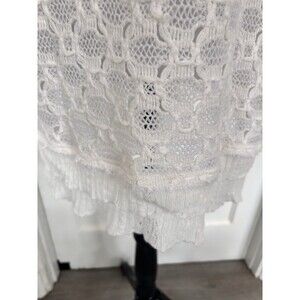 Free People Sweater Crochet Open Lace Long Sleeve Ruffle Hem Boho Top Ivory L