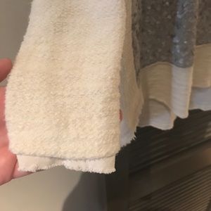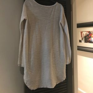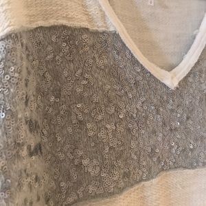 White sweater dress/tunic embellished with silver sequins. Linen trim decorating the sleeve. Gently worn