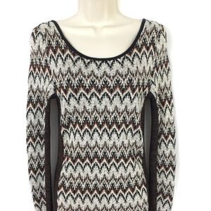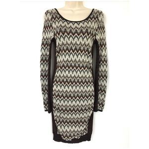 Free People Sweater Dress L brown metallic gold bodycon skinny chevron large