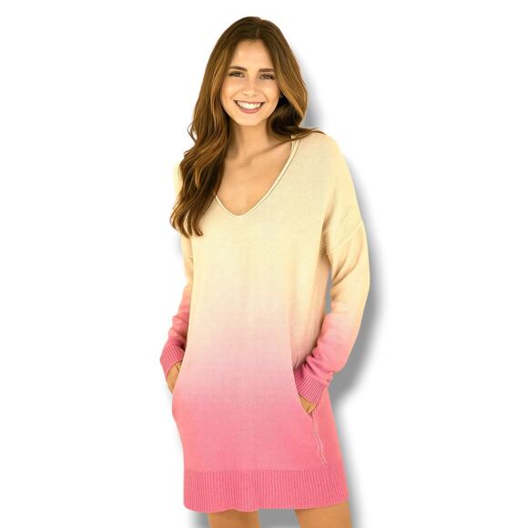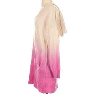Free People Sweater Dress Tunic S 100% Cashmere Cream Pink Ombre Hooded, Pockets