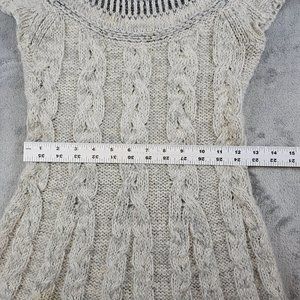 This Free People Sweater Dress in petite small, is a tasteful gray wool blend with a cable knit design. The heather sequins add a touch of sparkle, making it a versatile piece for any wardrobe.