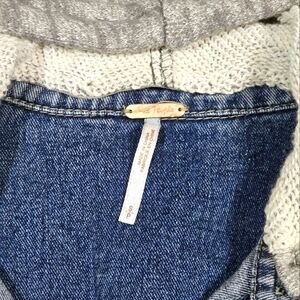 Free People Sweater Hooded Jean Jacket Size Small Blue Grey