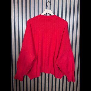Free People Sweater Medium Womens Red Ribbed Chunky Knit Mock Neck