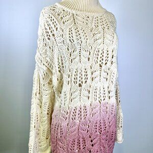 Free People Sweater Ombre Slouchy Mockneck Open Knit Oversized Pink Small Boho
