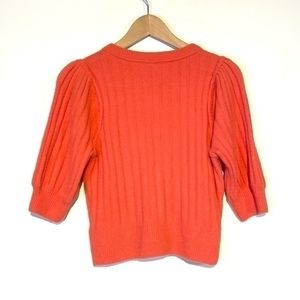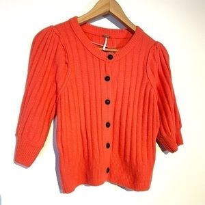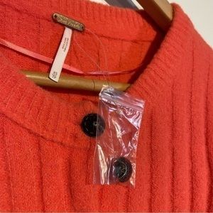 Free People Sweater Orange Button Front Rib Knit Cardigan 3/4 length sleeve New without Tags xs