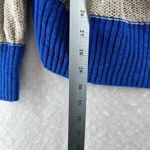 Free People Sweater Size L Cassidy Off The Shoulder Striped Tie Neck Tunic Blue