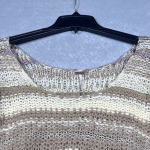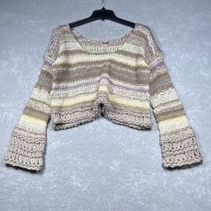 Free People Sweater Small Buttercream Limbo Cropped Striped Crochet Crop Knit