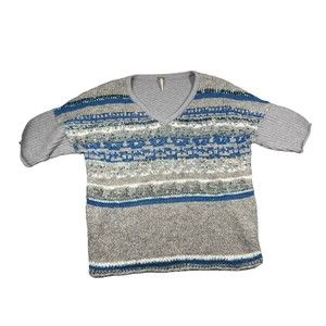 Free People Sweater Small Gray Blue Sequin V-Neck Sweater Short Sleeve Boho