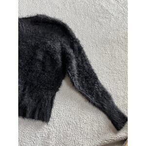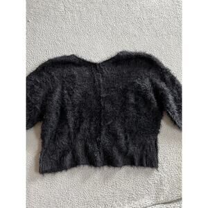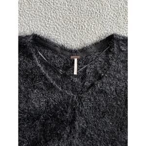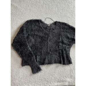 Free People Sweater Small Oversized Cropped Faux Fur Fuzzy Soft V-Neck Black
