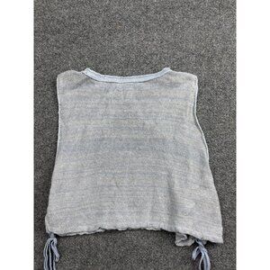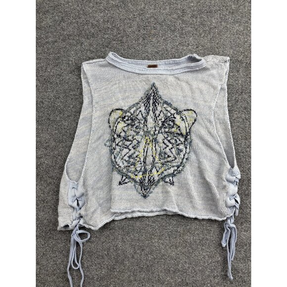 Free People Sweater Vest Womens XS Blue Embroidered Knit Lace Up Boho Cropped
