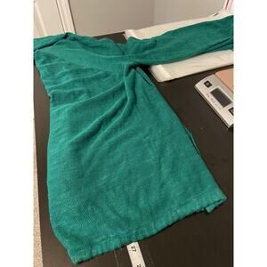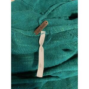 Free People Sweater Womens Large Green Hooded V Neck Linen Rayon Pullover FLAW