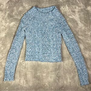 Description- blue and white in color. Slight cable knit look. Cropped. Stretchy.