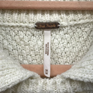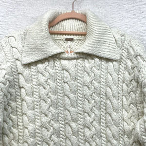 Free People Sweater Womens Medium Cream Every Cloud Cable Knit Collared Cozy