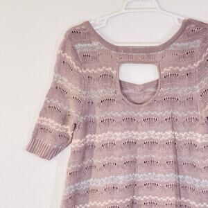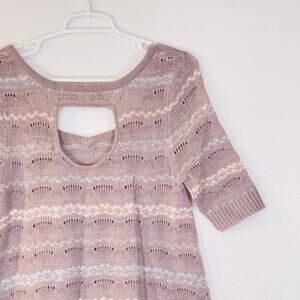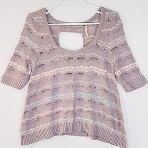 Free People Sweater Womens Medium Purple Striped Sweetheart Neck Short Sleeve