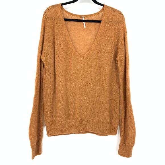 Free People Sweater Womens Oversized XS Brown Alpaca Wool Blend Deep V-Neck