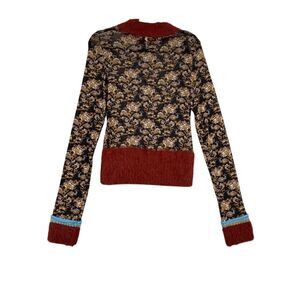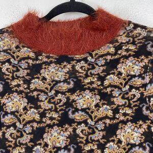 Free People Sweater Womens XL Black Baroque Print Fuzzy Trim Mock Neck Boho