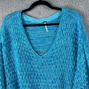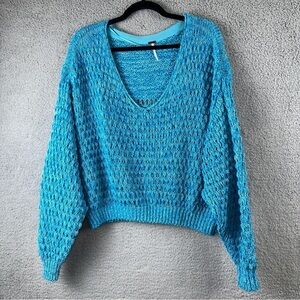 Free People Sweater Womens XS Blue Coconut Knit Chunky Y2K Boho Chic Flirty Soft
