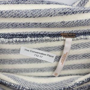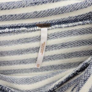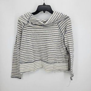 Free People Sweater Womens XS Blue Ivory Stripe Cowl Neck Cropped Pullover Boho