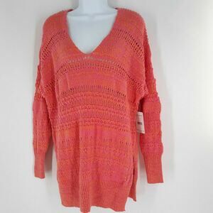 Free People Sweater Womens XS Open Stitch V-Neck Oversized Pullover Tunic Summer