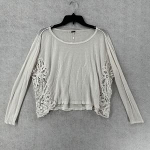 Free People Sweater Womens XS White Crochet Open Loose Knit Lace Crop Top