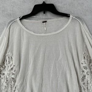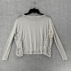 Free People Sweater Womens XS White Crochet Scoop Neck Open Loose Knit Lace Crop