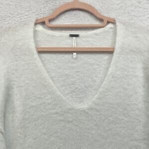 Free People Sweater Womens XS White Princess Knit V Neck Pullover Fuzzy Relaxed