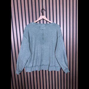 Free People Sweater XS Teal Blue Caroline We The Free Deep V Neck Chunky Knit