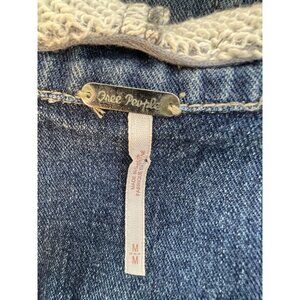 Free People Sweatshirt Hooded/Sleeve Jean Jacket Boho Streetwear M