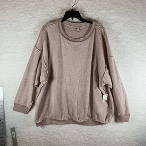 Free People Sweatshirt Women's M Pink Crewneck Long Sleeve Fleece Pullover 6440