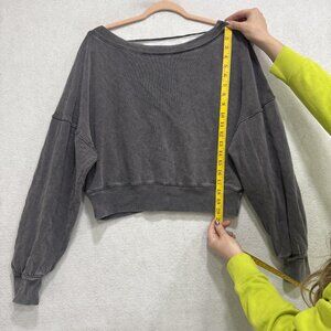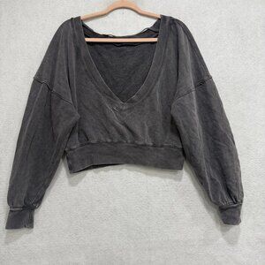 Free People Sweatshirt Womens XS Gray Cropped Deep V Back Boat Neck Pullover