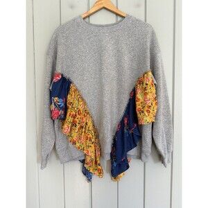 Free People Sweatshirt XS She’s Just Cute Pullover Gray Long Sleeves Ruffle
