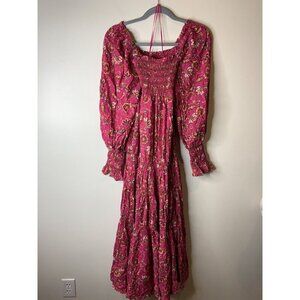 Free People Sweet Escape Smocked Shirred Maxi Dress Size S Boho Pink Floral NEW
