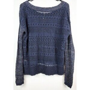 Free People Sweet Jane Crochet Back Knit Sweater Women Navy Blue Size Medium