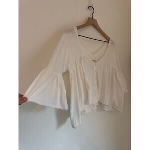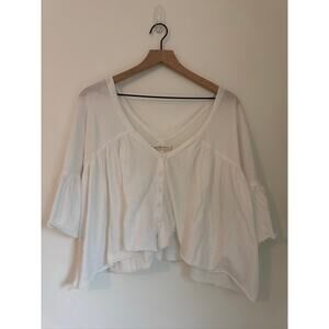 Free People Sweet Little Tee Flutter Style Blouse Crop Top - White, Small