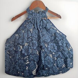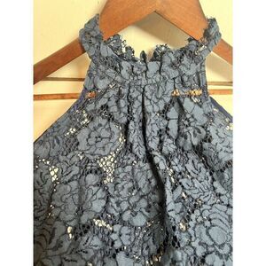 Free People Sweet Meadow Dreams Navy Lace Top size S Sheer Swing Boho Gg