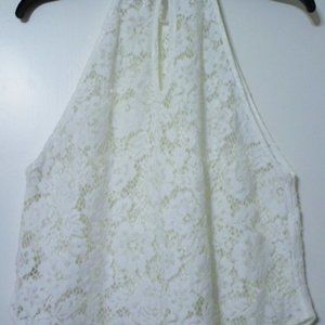 The heart and soul of romance, lace brings its charms to bear on this swoon-worthy top that's sheer from the high neckline to the cropped hem; Size Small. New with tags. Imported.