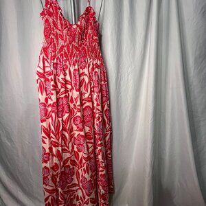 Keywords/SEO: Free People Sweet Nothings, red floral midi dress, smocked sundress, boho chic dress, cotton summer dress, festival fashion, beach vacation outfit, flowy feminine dress, cottagecore style, stretchy bodice, FP dress XS, bohemian vibe, romantic midi, resort wear, casual weekend dress, MissSpike1 closet