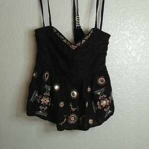 Free People Sweet Safari Halter Top Neon Peplum Sweetheart Striped OB812076 sz S