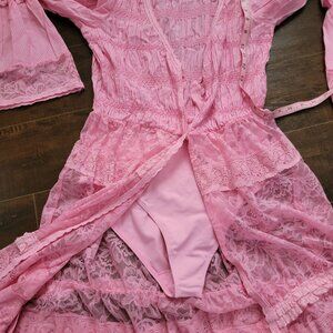 Free People Sweet Saloon Maxi Bodysuit Womens M Pink Lace Romance Enchanting