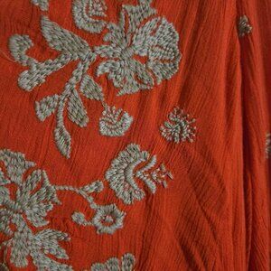 Free People Sweet Tennessee Embroidered Red Long Sleeve Tunic Dress Size S