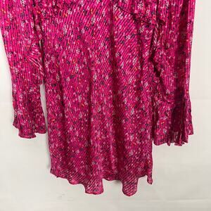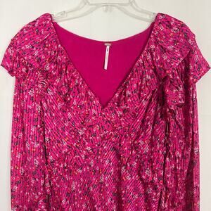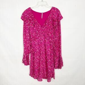 Free People Sweetest Thing floral dress in magenta pink. V-neck. Long sleeves. Ruffled hems. Crinkled fabric. Hidden side zipper. Fully lined. Rare color. In great used condition. No stains, tears or holes.